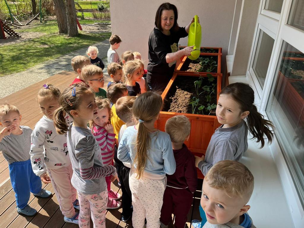 Ke ,,Dni Země¨jsem sázeli do nových vyvýšených záhonků jahody. A teď slunce, voda a jahůdky rovnou do pusy.
