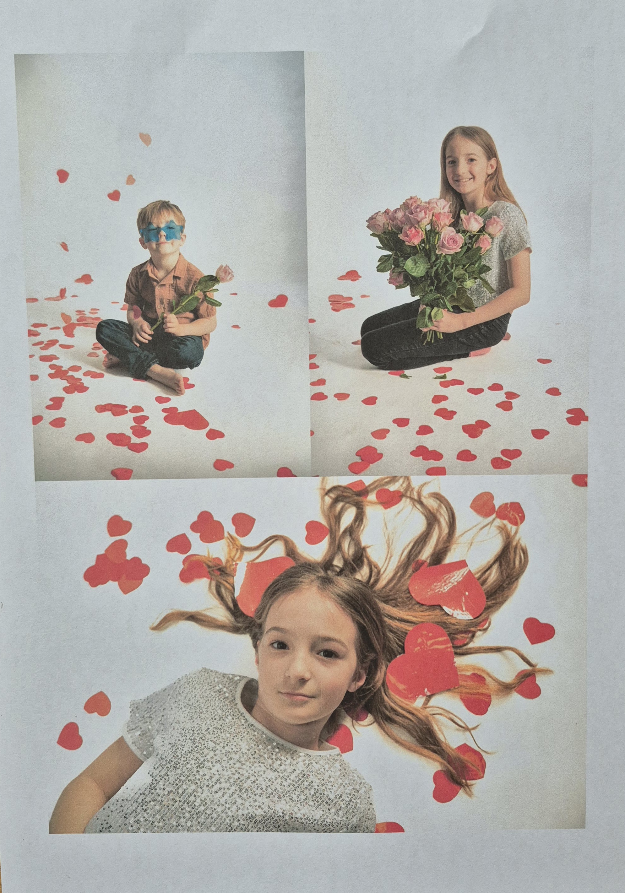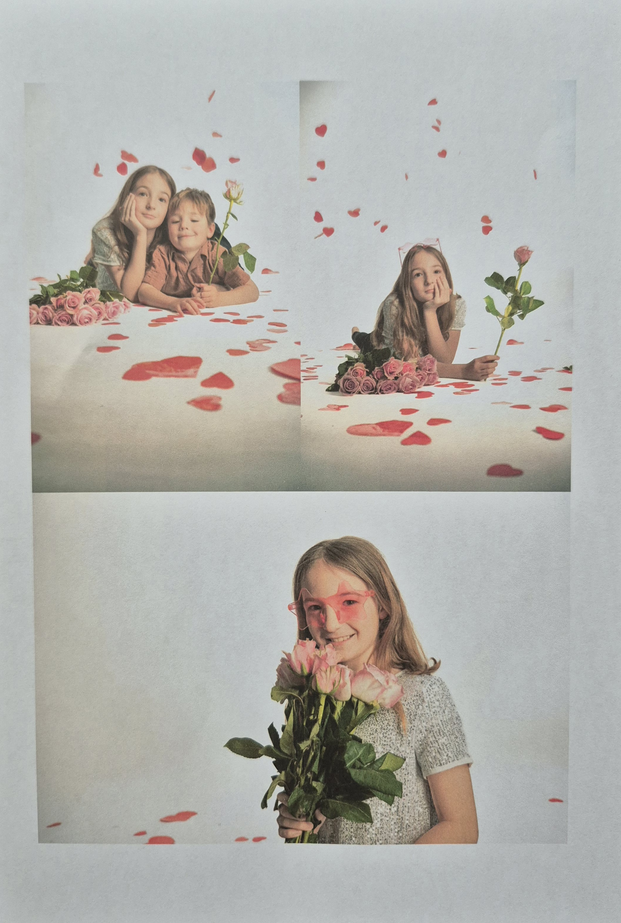 Vzhledem k bílému pozadí není vhodná bílá barva, aby děti nesplynuly s pozadím. Na focení budou připravené červené růže a červené balónky v podobě srdíček.