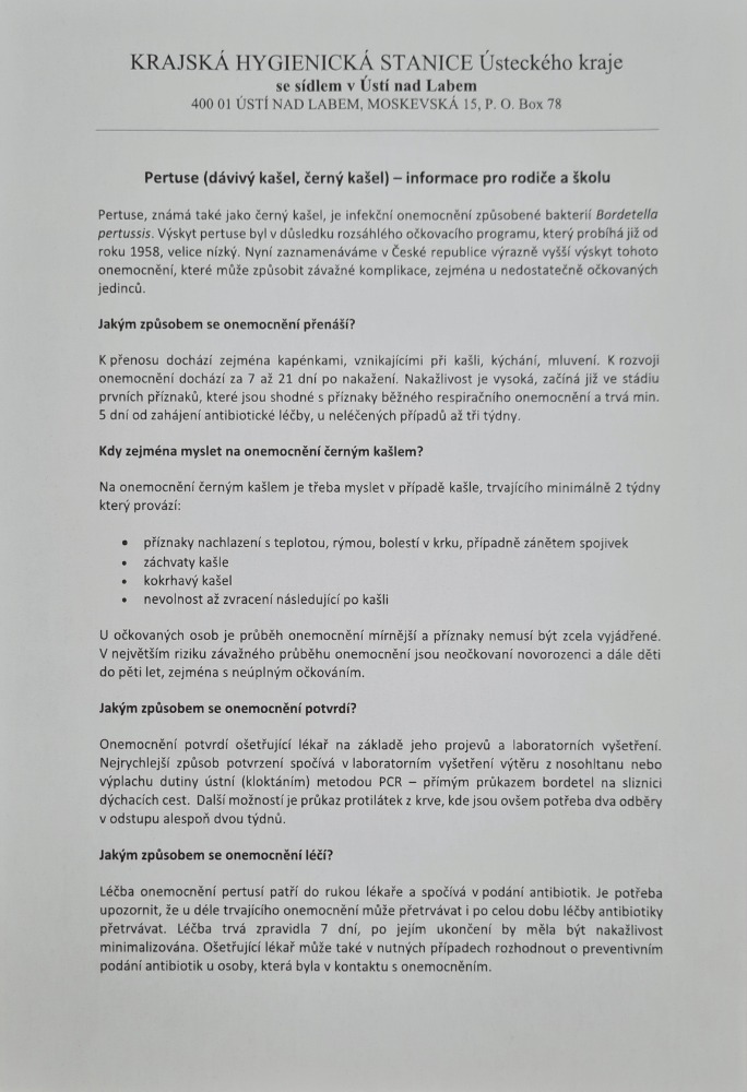 Výskyt černého kašle. Více informací po rozkliknutí.