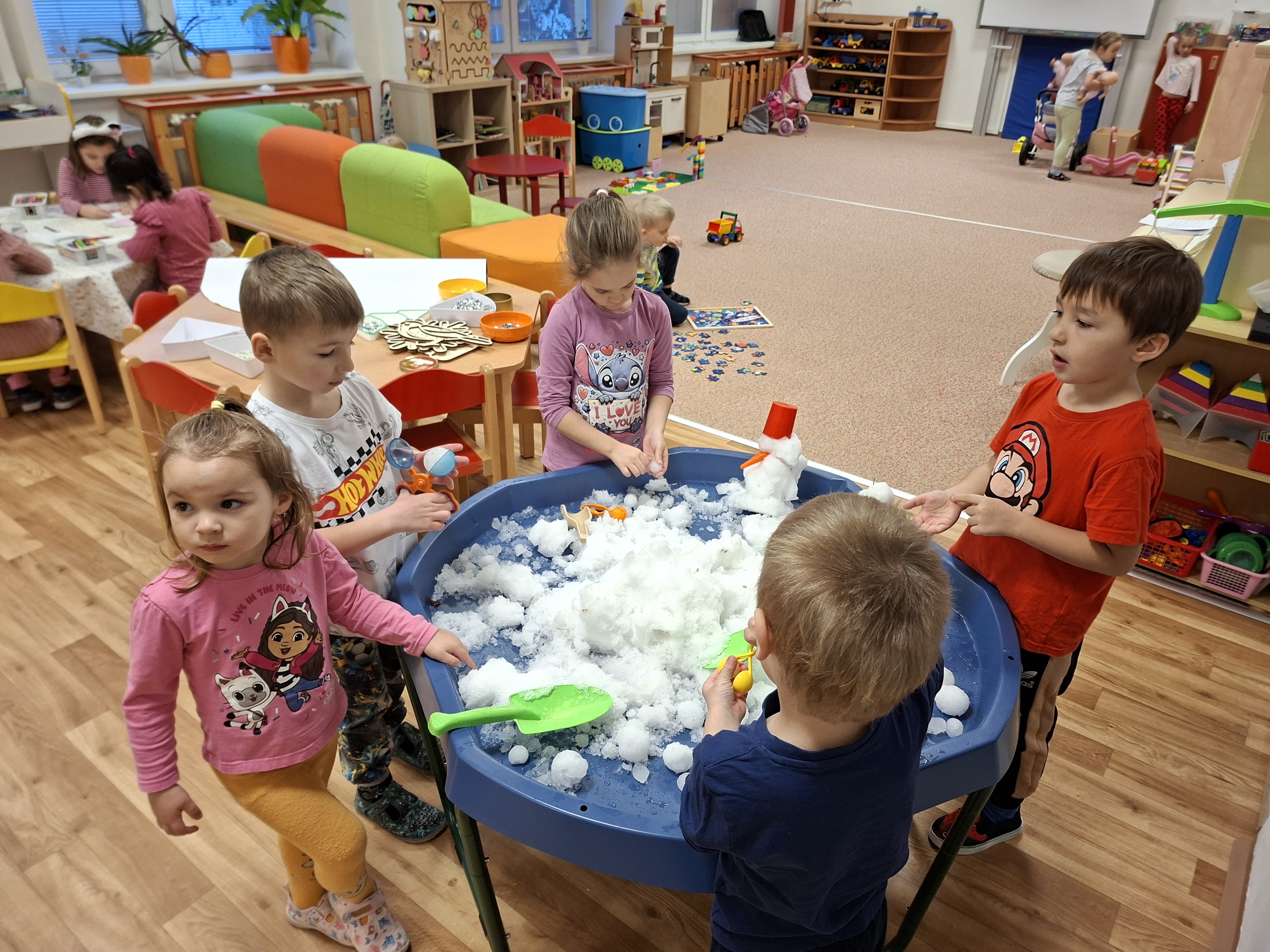 - senzorické hraní – objevování, experimentování, rozvoj smyslových dovedností;